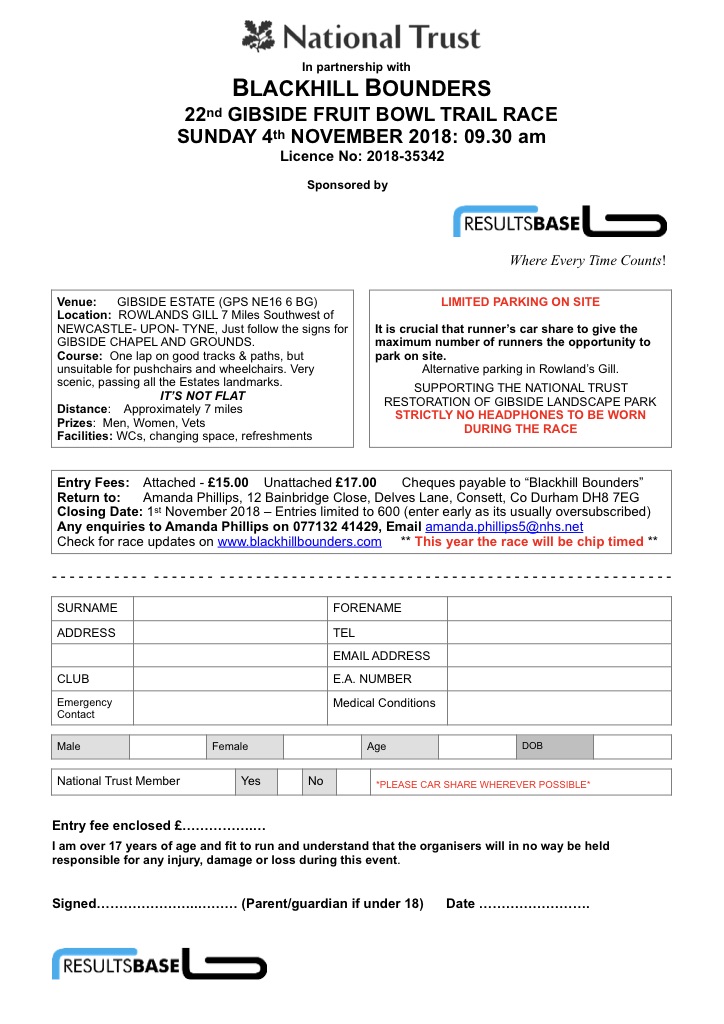 | 5882 | 2018 Nov 04 Sun 0930 | Gibside Fruit Bowl Trail Race 7M